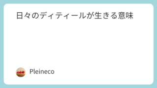 思ったこと 日々のディティールが生きる意味 日々、何をやるかやらないかどのようにやるかひとつひとつの、細かいことをどうやるのかその様が様子が様式美になるあなたの、様式美日々のディティールをどうこなすのかそれが、生きる意味大義のない時代で人生の意味を考えるなんてそんな壮大なことに悩むこ... 2025.10.10 思ったこと